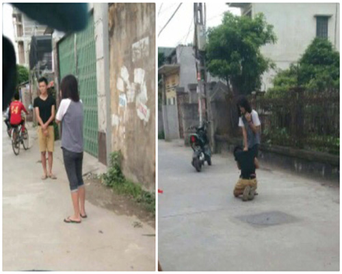 Chiều 16.7, tại khu vực xã Đông Dư - Bát Tràng (Gia Lâm, Hà Nội), một đôi nam nữ trẻ tuổi đứng trò chuyện với nhau. Một lúc sau, anh chàng bất ngờ quỳ xuống khóc lóc, ôm chân cô gái khiến cô khá bất ngờ, lúng túng. Sự việc diễn ra khiến những người xung quanh chú ý, không hiểu chuyện gì. Phải đến khi nhận được sự can ngăn của những người xung quanh, cô gái kia mới được giải thoát.