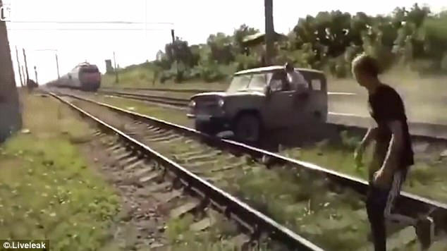 Vài giây sau, một đoàn tàu cao tốc từ xa lao nhanh đến, tiếng còi báo hiệu vang lên inh ỏi khiến người bạn đi cùng hoảng sợ vội vã thúc giục IIdar bỏ xe nhanh chóng rời khỏi đường ray nhưng người này vẫn khăng khăng không nghe, quyết tâm đưa chiếc xe ra khỏi đường ray cho bằng được.
