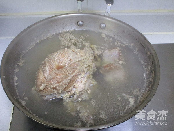 - Bước 3: Thả phần bắp bò vào nồi nước lạnh, đun qua một lượt rồi đổ bỏ phần nước bẩn.