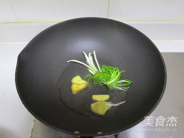 - Bước 4: Lấy chảo ra, đổ dầu ăn vào, cho gừng và hành vào đảo thơm.