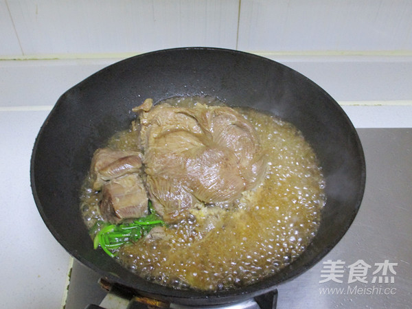 - Bước 5: Tiếp đó cho bắp bò vào, đảo qua cho thơm rồi đổ rượu gạo vào.