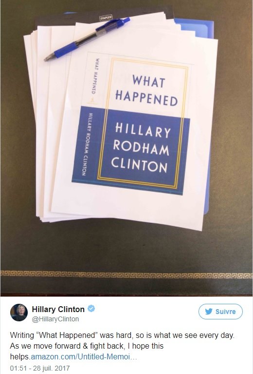 Trang The Hill tiết lộ rằng cuốn sách của bà Hillary Clinton sẽ chứa đựng “những thông tin bùng nổ” về thất bại của mình trong đó có các yếu tố can thiệp của Nga vào cuộc bầu cử Mỹ và cuộc điều tra do giám đốc FBI James Comey tiến hành nhắm vào việc sử dụng email cá nhân bất cẩn của bà khi làm Ngoại trưởng.