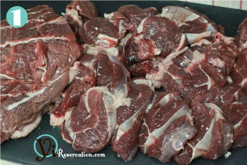 - Trần thịt bò qua nước sôi. Rửa thịt bò bằng nước lạnh và để ráo nước.