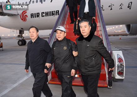 Vương Quốc Cường (giữa) về nước đầu thú cuối năm 2014. Ảnh: Xinhua