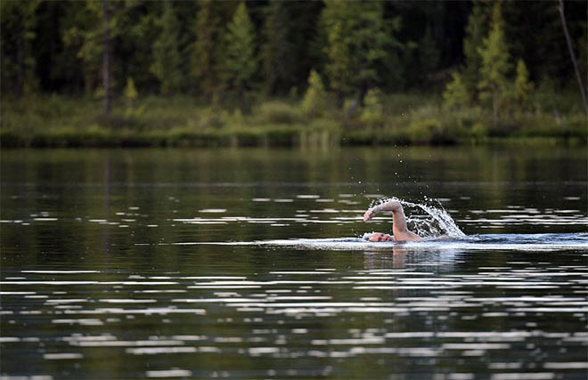 Ông Putin thoải mái bơi tại một hồi nước ở miền nam Siberia.