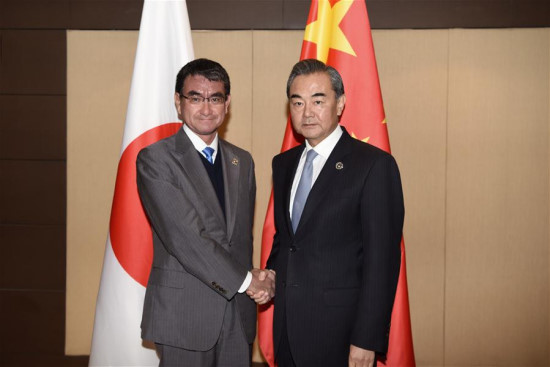 Bộ trưởng Ngoại giao Trung Quốc Vương Nghị ngày 7/8 có cuộc gặp với người đồng cấp Nhật Bản Tako Kono bên lề hội nghị Diễn đàn khu vực ASEAN (ARF) ở Manila. Ảnh: Tân Hoa Xã.