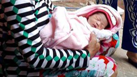 Bé gái sơ sinh khoảng 2-3 ngày tuổi, chỉ được đắp lên mình chiếc áo thun trắng. Ông Phú cùng mọi người ủ ấm và cho bé uống sữa, đồng thời báo chính quyền địa phương.