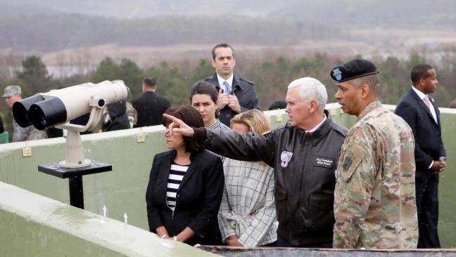 Phó tổng thống Mỹ Mike Pence tại vùng phi quân sự chia cắt bán đảo Triều Tiên ở Bàn Môn Điếm, ngày 17/04/2017