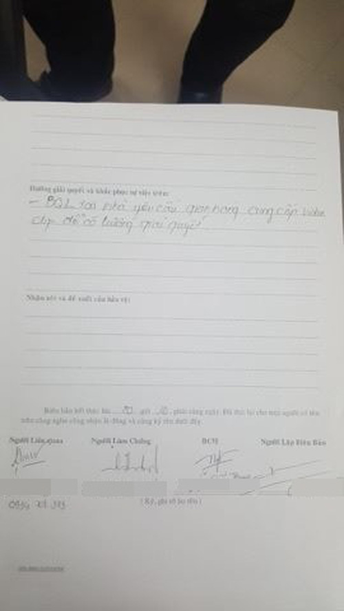 Biên bản do chủ cửa hàng có nhân viên bị tát cung cấp