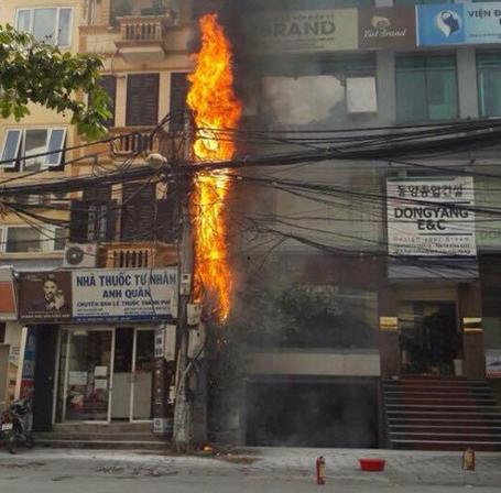 Theo clip được đăng trên diễn đàn Beat, ngọn lửa bao trùm toàn bộ cây cột điện, kèm theo những tiếng nổ lụp bụp và tóe tia lửa điện ra xung quanh. Thấy cột điện cháy ở Hà Nội, người dân địa phương nhanh chóng di chuyển những chiếc xe máy đang đỗ xung quanh.