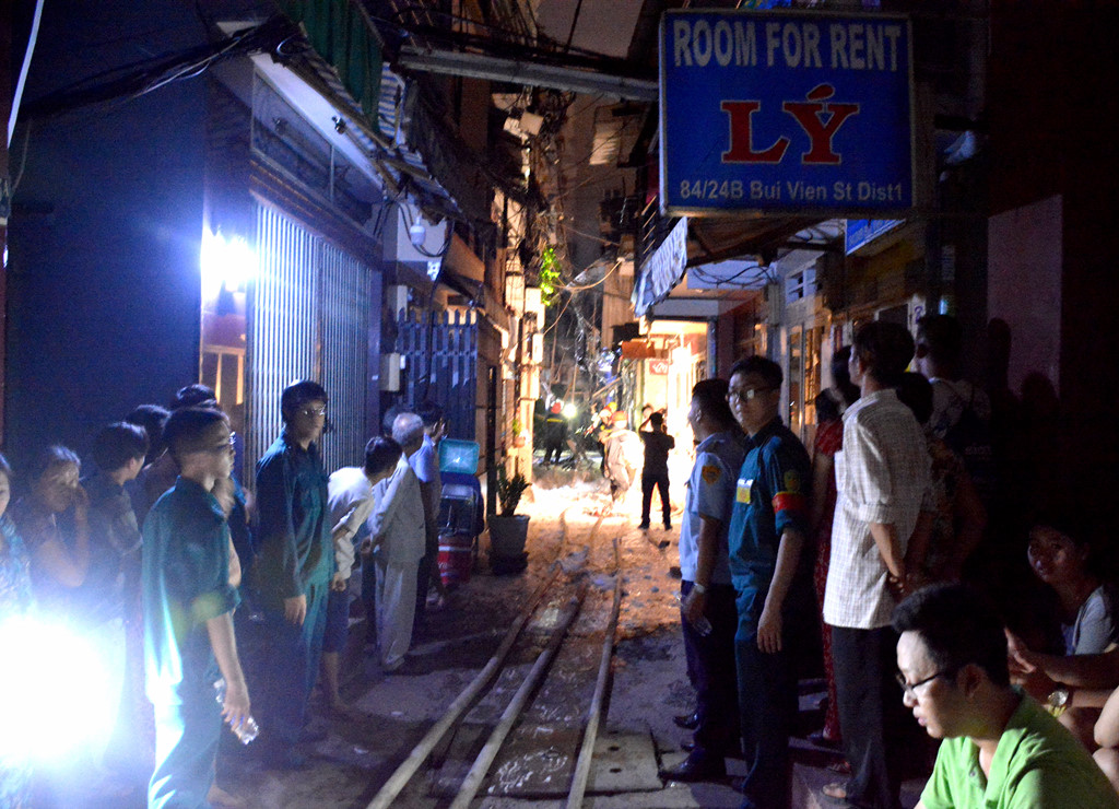 Khuya 12/8, ngọn lửa bất ngờ bùng lên tại căn nhà nằm trong hẻm 84 đường Bùi Viện (quận 1, TP.HCM). Nhiều người dân xung quanh huy động nhiều bình chữa cháy mini để dập nhưng bất thành. Lửa bén nhanh, cháy dữ dội, tỏa mùi khét lẹt cả khu phố.