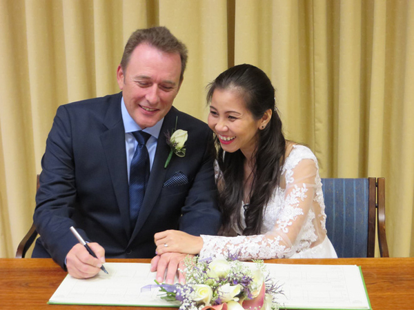 Hơn một tháng sau, chị Thư phát hiện có thai. Lúc đám cưới diễn ra ở Anh, ông xã khiến chị cảm động vì bài phát biểu trước bạn bè cùng gia đình. Anh quyết định gắn bó cuộc đời với chị vì mỗi lần thức giấc trong bệnh viện, anh thấy chị ở đó, đang đọc hoặc dạy học online, hay đơn giản chỉ ngồi kiểm tra xem anh có ổn không.