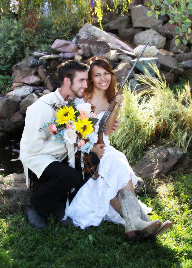 Bức ảnh cưới tinh nghịch của cặp đôi cách đây nhiều năm.