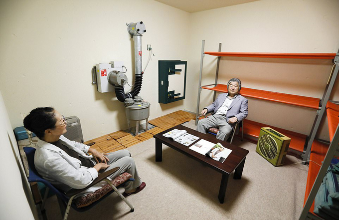 Ông Kenji Oribe và bà Nobuko Oribe trong căn hầm.