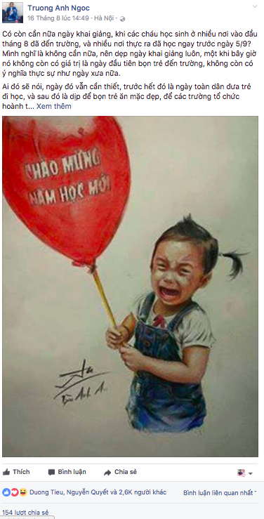 Chia sẻ của nhà báo Trương Anh Ngọc nhận được hơn 2.600 lượt thích và 154 lượt chia sẻ, 168 lượt bình luận trên Facebook.
