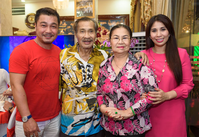 Lý Hương chụp cùng anh trai Lý Hùng, bố NSND Lý Huỳnh và mẹ.