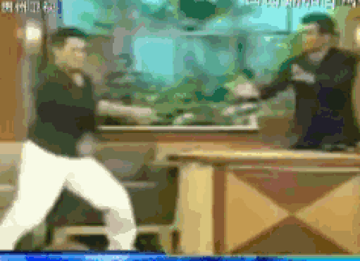 Là một ngôi sao kungfu, Thành Long chẳng phải hạng dễ bị bắt nạt. Bàn tay của vị MC chỉ sắp chạm mặt, Thành Long ngay lập tức đã tung chân phản đòn khiến tất cả mọi người ngỡ ngàng. Biết không nên đùa với lửa, nam MC sau đó ngồi “ngoan như cún” cho tới cuối chương trình.