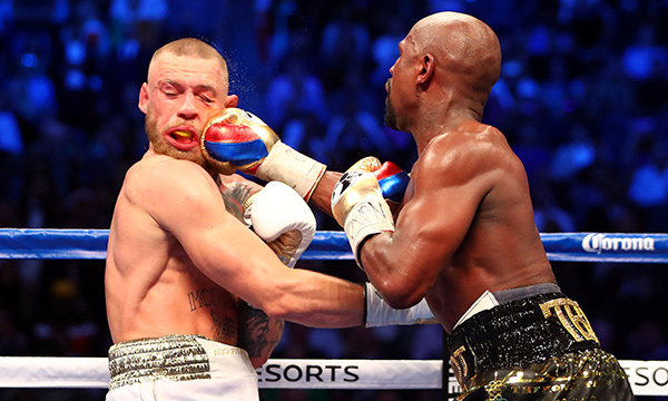 Những đòn đánh như thế này ở các hiệp 8, 9 và 10 khiến McGregor không còn trụ vững trước Mayweather