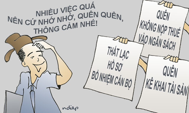 Có một kiểu "quên" khác cũng rất đáng sợ là đi thu tiền thuế, phí xong quên, để ngoài sổ sách, không nộp vào ngân sách nhà nước. Những người mắc bệnh 'quên" này có lẽ hơi nhiều vì báo chí liên tục đưa tin.