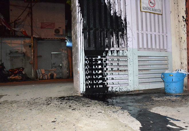 Nhóm côn đồ tạt sơn đen khắp nơi. Ảnh: Thái Linh.