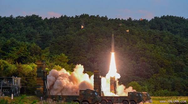 Quân đội Hàn Quốc phóng tên lửa Hyunmoo vào vùng biển Nhật Bản trong một cuộc tập trận ở Hàn Quốc ngày 4/9. Ảnh: Bộ Quốc phòng Hàn Quốc