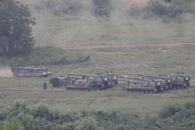 Trong động thái chuẩn bị cho một cuộc xung đột trực tiếp với Triều Tiên, Hàn Quốc đã chuyển xe tăng và cá vũ khí hạng nặng khác bao gồm đại bác tới biên giới. Số vũ khí và các phương tiện quân sự này sẽ thực hiện các cuộc tập trận bắn đạn thật trong khu vực.