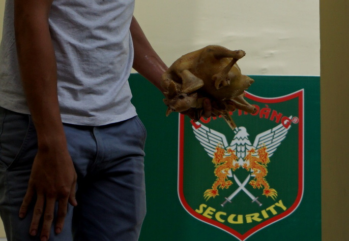 Cuối cùng, thanh niên nói trên chỉ giật được một con gà cúng