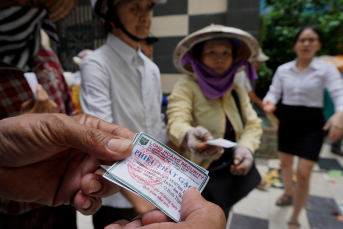 Theo các nhân viên ở công ty này, phiếu nhận gạo miễn phí được công ty phát cho những người nghèo, già, đang hành nghề bán vé số, chạy xe ôm, hàng rong... tại khu vực trên hôm 5-9 và đến trưa nay (6-9) thì những người có phiếu sẽ đến nhận. Với mỗi phiếu, người nhận sẽ được 10 kg gạo cùng một số phần quà như kẹo bánh.