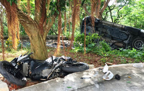 Vụ tai nạn giao thông hi hữu xảy ra trên đỉnh núi ở thành phố Vũng Tàu, tỉnh Bà Rịa – Vũng Tàu làm các nạn nhân bị thương; gây hư hỏng nặng 2 phương tiện là ôtô 7 chỗ và xe phân khối lớn.