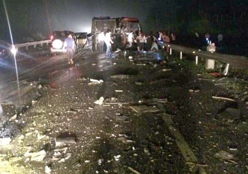 Cú tông mạnh khiến đầu xe giường nằm nát vụn, nhiều mảnh vỡ bắn tung toé. Nhiều đồ đạc bên trong xe bị xáo trộn và rơi ra ngoài. Chiếc xe tải cũng bị hư hỏng nặng phần đầu, gãy trục, sập bánh trước.