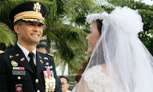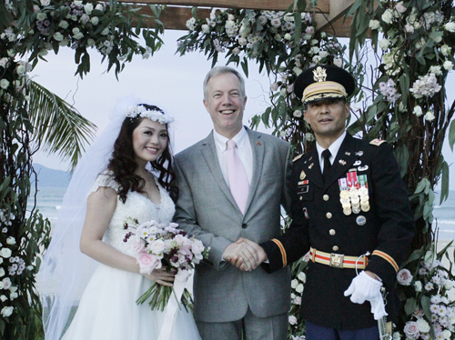 Tháng 5 vừa qua, hai người đăng ký kết hôn tại Hawaii. Sau lễ cưới đơn giản tại đó, chàng quân nhân lên kế hoạch tổ chức một đám cưới như người phụ nữ của mình mong muốn, trên bờ biển ở quê nhà Việt Nam.