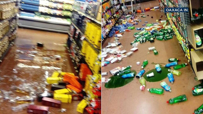 Hàng hóa đổ vỡ trong một siêu thị (Ảnh: Oxaca In)
