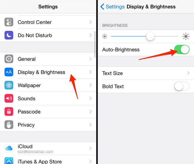 Đây là việc làm có vẻ đơn giản nhưng nó sẽ cải thiện pin cho iPhone rất nhiều. Chỉ cần vào Settings > Display & Brightness và kích hoạt Auto-Brightness là xong.