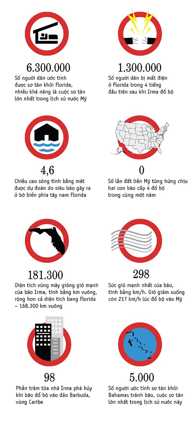 Dưới đây là những số liệu cho thấy sự cuồng nộ và ảnh hưởng kinh hoàng của siêu bão Irma: