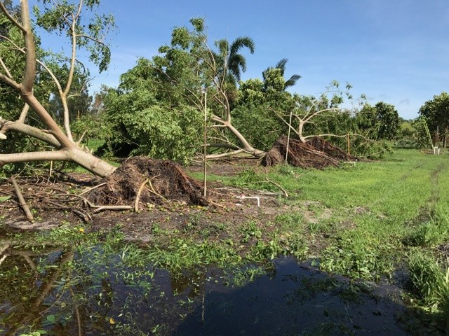 Anh Tí, chủ nhân Tí Trái Cây Florida ở West Palm Beach, một trong ba thành phố chính của South Florida, cho biết, “Mặc dù những ngày trước đã có sự chuẩn bị khá kỹ lưỡng như chống cọc cho cây, cắt cây thấp xuống, vì nghe tin biết rằng cơn bão này rất dữ dằn, nhưng khi bão đến nhiều cây cóc, vải, cây mãng cầu na vẫn bị đánh bật gốc, gãy đổ, thiệt hại nhiều lắm. Nhãn trái mùa cũng rụng búa la xua.”