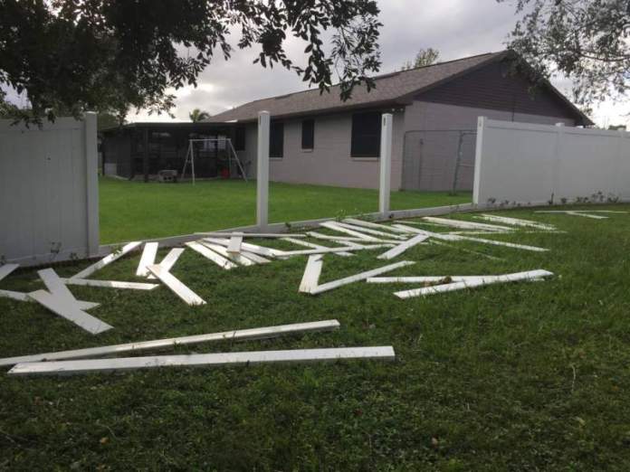 Hàng rào “vinyl fencing” ở Belle Isle, Orlando bị bão thổi tả tơi