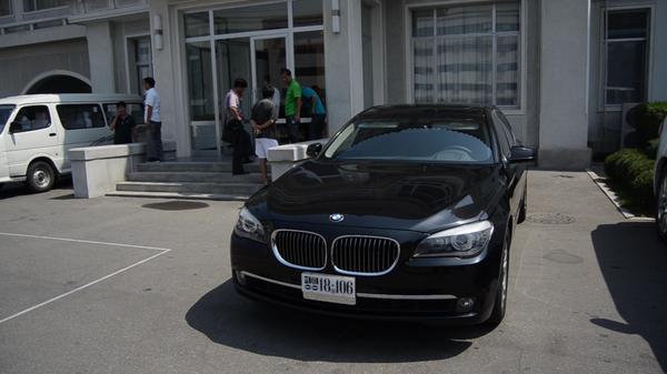 Xe hiệu BMW đỗ bên ngoài một nhà hàng ở Triều Tiên.