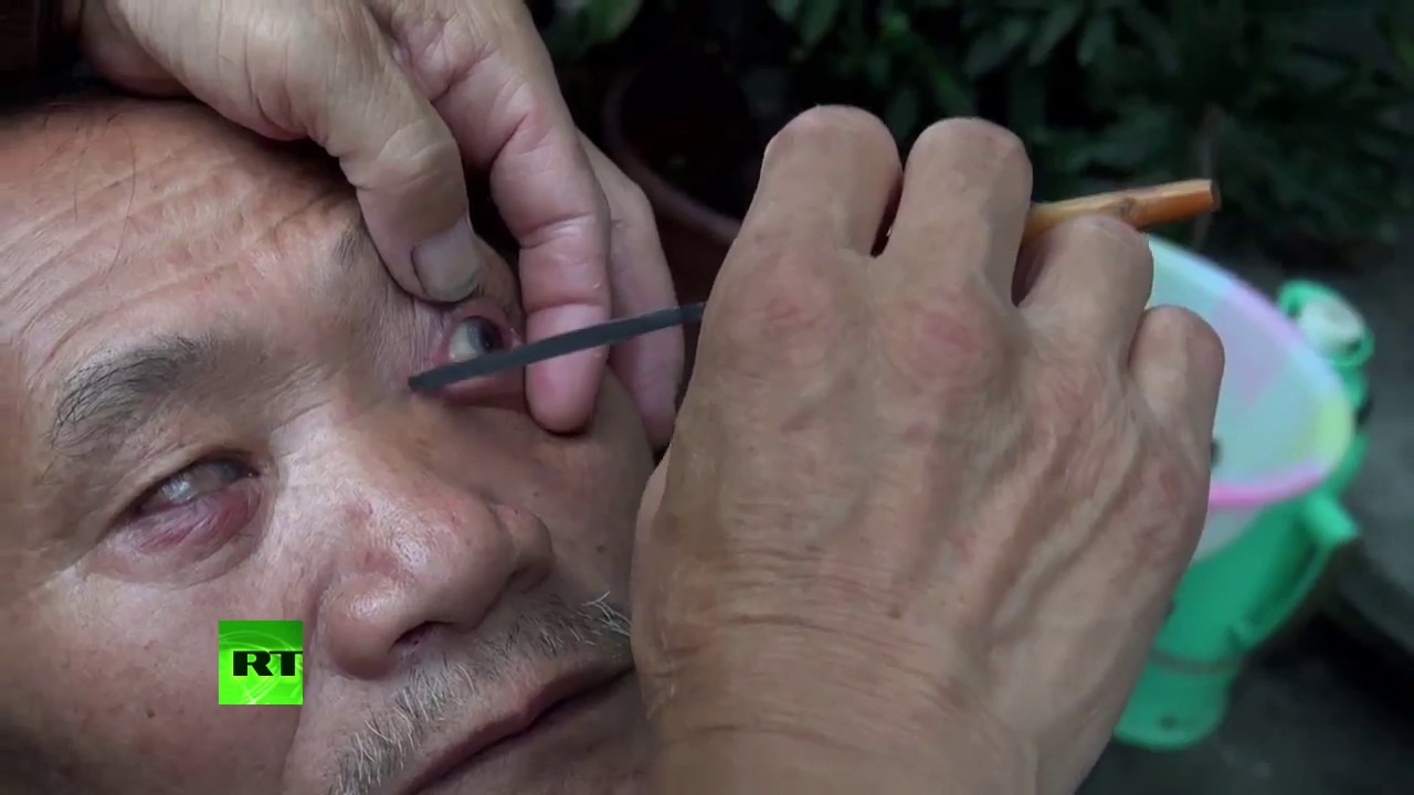 Video đăng trên mạng cho thấy ông Xiong cẩn thận khử trùng lưỡi dao trước khi dùng để lấy bụi bẩn, gỉ trong mắt của khách. Trong suốt hàng chục năm hành nghề, ông khẳng định chưa làm bất kỳ khách hàng nào bị thương.