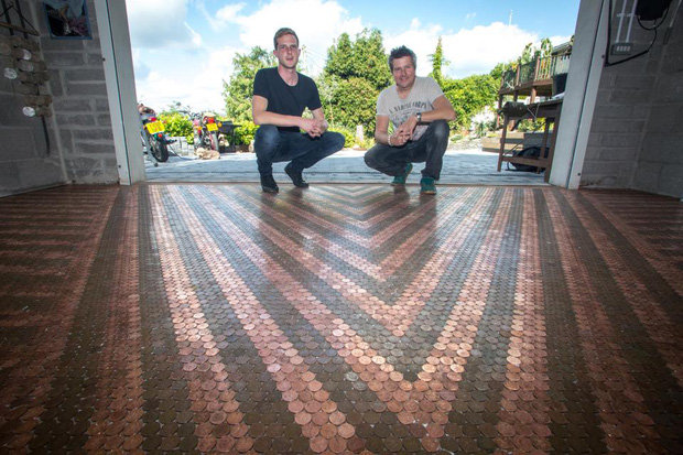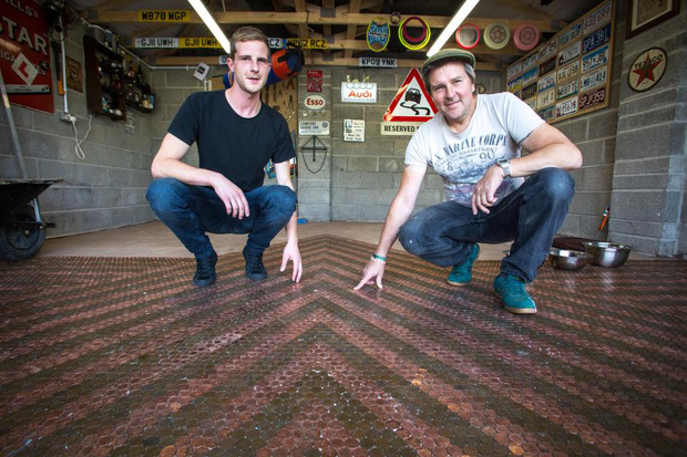 Lát sàn nhà bằng gạch đá hoa xem ra đã là trò xưa cũ. Với sự phát triển của nhiều loại vật liệu xây dựng cùng với tư duy sáng tạo ngày càng phong phú của người dùng, con người càng nghĩ ra nhiều thứ mới mẻ để trang trí trong nhà mình. Như anh Dominic Lowe và cậu con trai đã quyết định lát sàn phòng để xe ô tô bằng tiền xu.