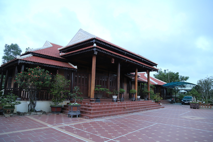 Căn nhà kết cấu ba gian hai chái, rộng hơn 100 m2, trị giá khoảng 2 tỷ đồng, gồm 900 triệu tiền gỗ, số còn lại là tiền công và vật tư khác. Nhà được xây trên thửa đất 2.000 m2 tại xã Hải Ba, được ông mua với giá 300 triệu đồng từ nhiều năm trước.