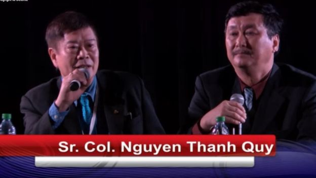 Đại tá Nguyễn Thanh Quý (trái) tại buổi giao lưu - hình ảnh chụp từ video tường thuật trực tiếp của Tổ chức Bảo tàng USS Midway