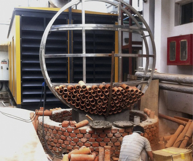 Hợp tác cùng công ty Deki Electronics có trụ sở tại New Dehli, nhóm Ant Studio đã sử dụng một khung kim loại vòng tròn và xếp hàng trăm ống làm bằng đất sét, tạo thành một thứ có hình dạng như tổ ong.