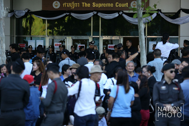 Rất đông người ủng hộ bà Yingluck đã có mặt tại tòa án tối cao trước phiên luận tội sáng 27/9. (Ảnh: Nation)