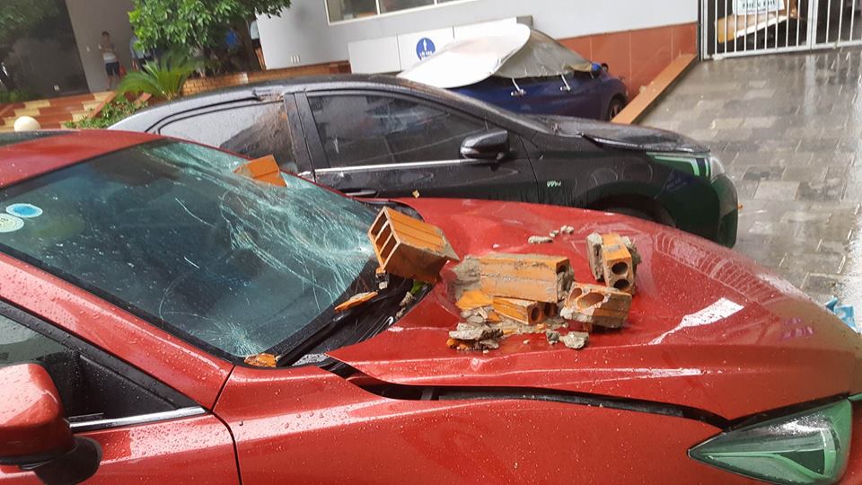 Khi gửi xe ở đó, chủ nhân của chiếc Mazda 3 trên cũng đóng tiền với giá trông giữ chung của khu dân cư. Và rồi bỗng nhiên vào một ngày đẹp trời gạch đá ở đâu rơi tứ tung vào xe ô tô. Hậu quả là kính lái phía trước bị vỡ nứt, nắp ca-pô cũng móp méo, hư hỏng. Chi phí sửa chữa chiếc xe lên tới hơn 44 triệu đồng.