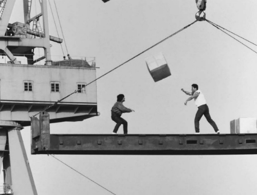 Bức ảnh trong cuốn tự truyện của Thành Long. Ngôi sao võ thuật miêu tả, người đồng nghiệp Hollywood mặc áo trắng tỏ ra vô cùng sợ hãi khi diễn cảnh đánh nhau trên không trong phim Người bảo vệ mặc dù: "Anh ta có dây bảo hiểm, còn tôi thì không"