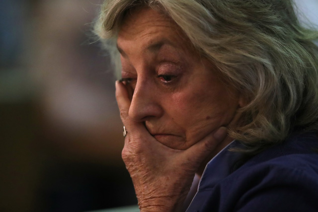 Người phụ nữ Mỹ đau buồn khi đến tưởng niệm các nạn nhân vụ thảm sát ở Las vegas - Ảnh: REUTERS