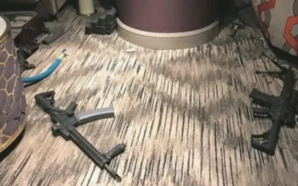 Trong căn phòng 32135 trên tầng 32 của khách sạn Mandalay Bay các khẩu súng công suất cao nằm rải rác trên sàn.