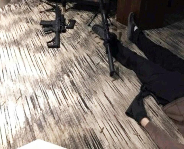 Cảnh sát đã tìm thấy ít nhất 23 khẩu súng cùng hàng nghìn viên đạn bên trong căn phòng, đồng thời phát hiện nghi phạm đã gắn một camera trong phòng để ghi lại toàn bộ vụ thảm sát, một chiếc gắn bên ngoài căn phòng dường như để theo dõi nhất cử nhất động của lực lượng an ninh trước khi ập vào căn phòng.