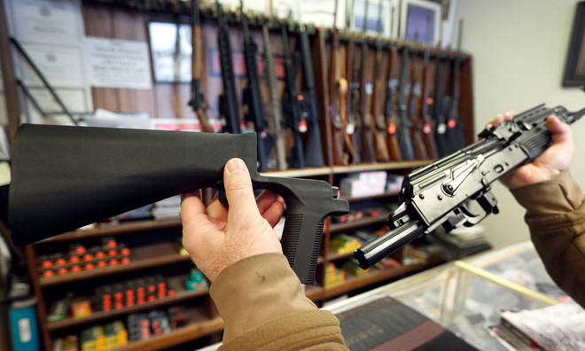 Một báng súng cải tiến bán trong cửa hàng tại Mỹ. Các thiết bị cải biến như thế này thường hợp pháp và không đắt, một số phiên bản được rao với giá 99 USD. Ảnh: Getty .