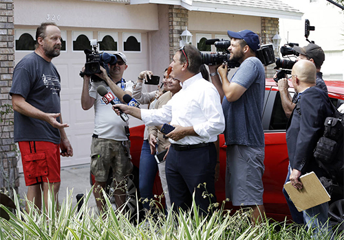 Eric Paddock (trái) trả lời báo chí trước cửa nhà tại thành phố Orlando, bang Florida, Mỹ vào ngày 2/10.